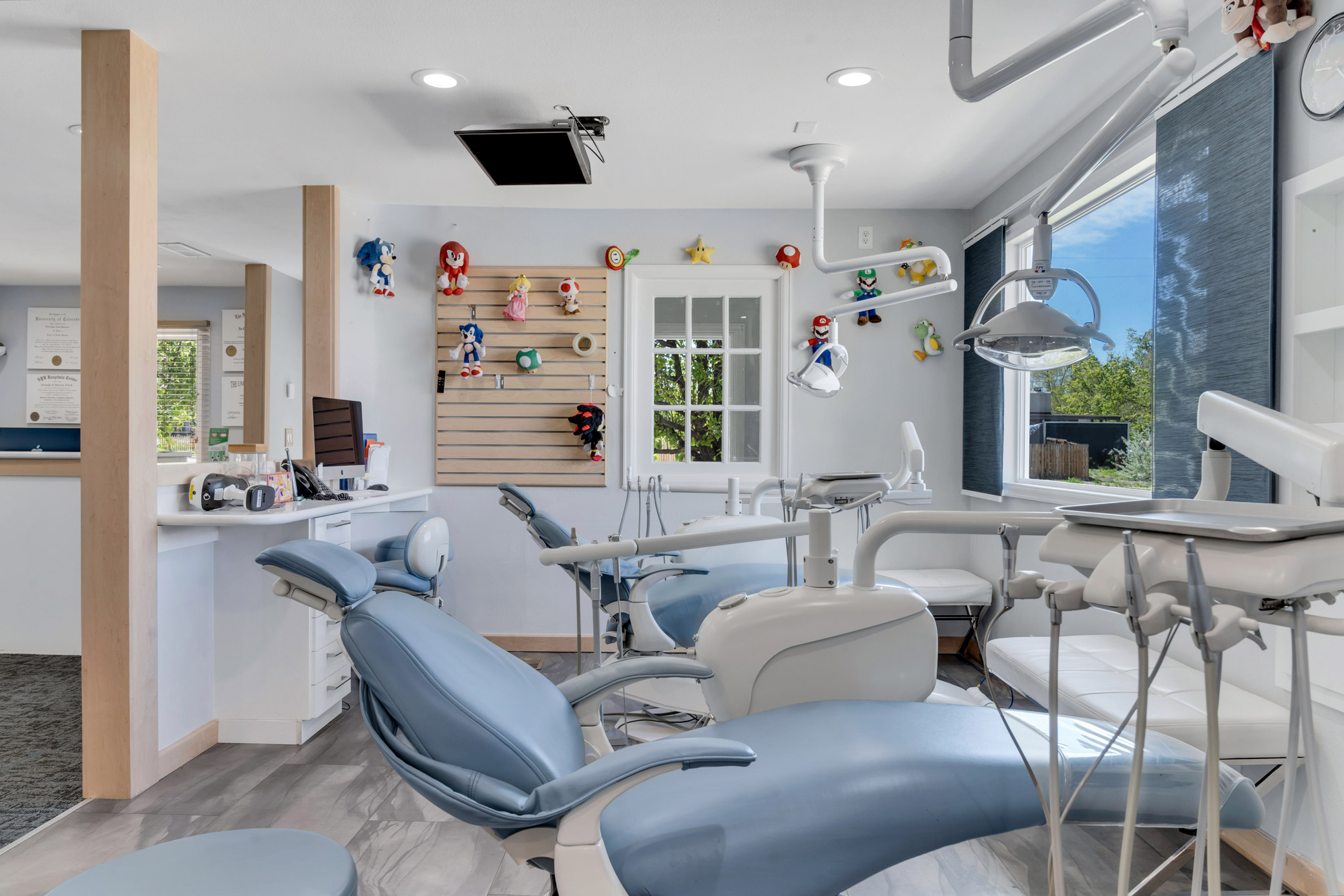 We invite you to take a virtual tour and look around at our fun and inviting kids dental office in Aurora and Denver. Our team of kids dentist and staff have created an atmosphere of calm, cool, and collected to keep kids feeling at ease, and parents happy. As you can see, our colorful and engaging aesthetics make you and your child feel welcome and our amenities will keep you entertained and relaxed.
